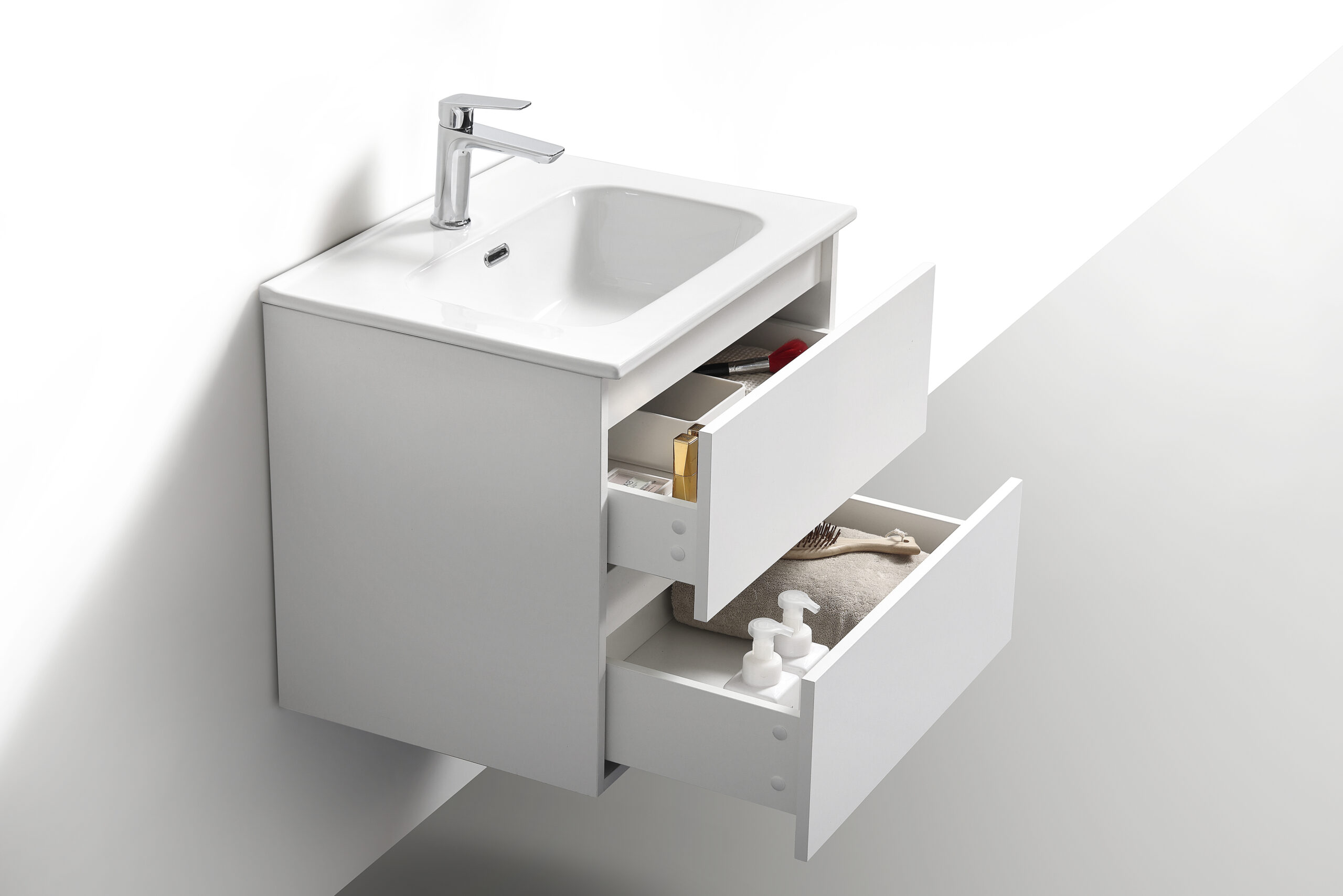 - Complete badkamermeubelset: onderkast, wastafel en vlakke spiegel