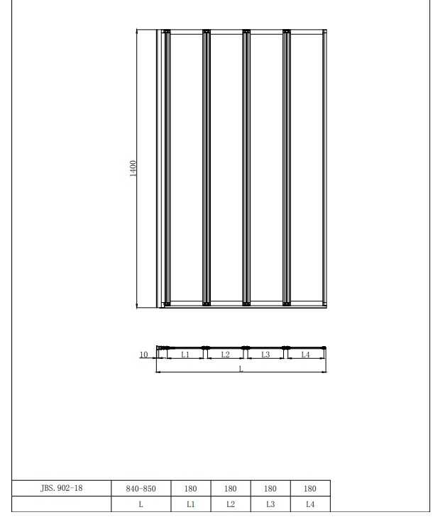 4 delige vouwbare badwand die volledig inklapbaar is.