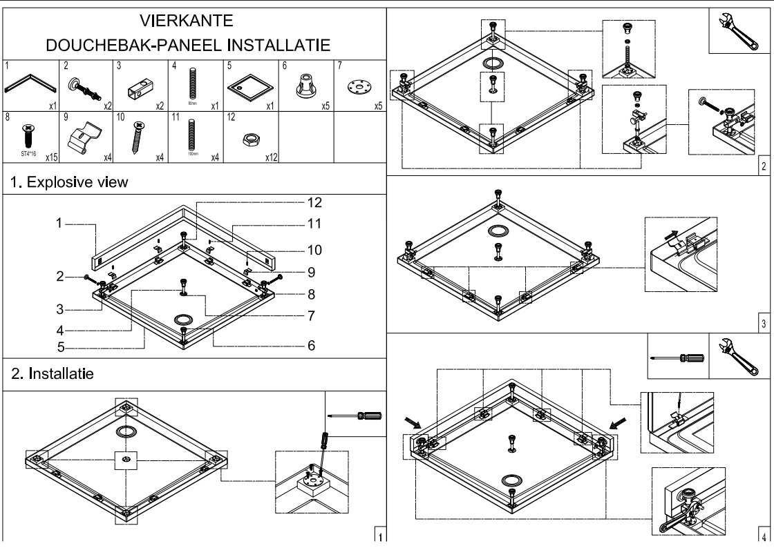 - Deze vierkante douchebak set wordt compleet geleverd; douchebak, potenset, voorpaneel en sifon.