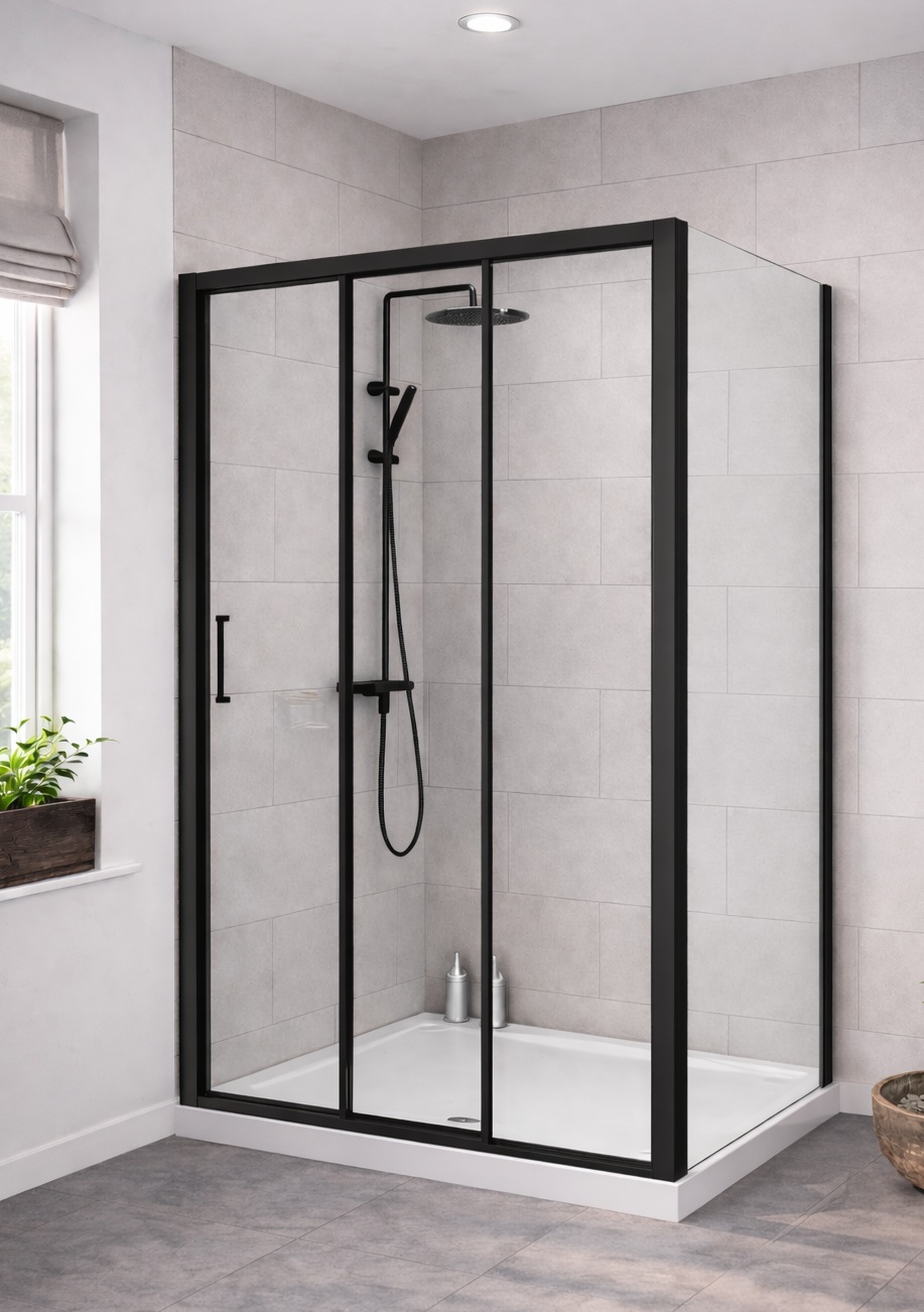 - Trendy douchecabine met matzwarte profielen