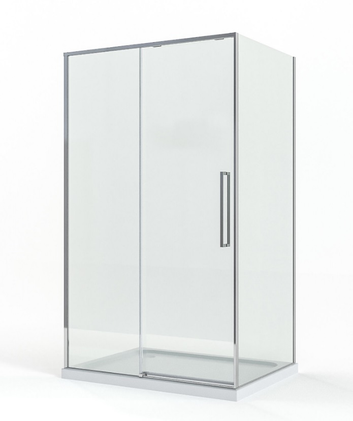 - Rechthoekige douchecabine met 1 schuifdeur en zijwand met smalle profielen.