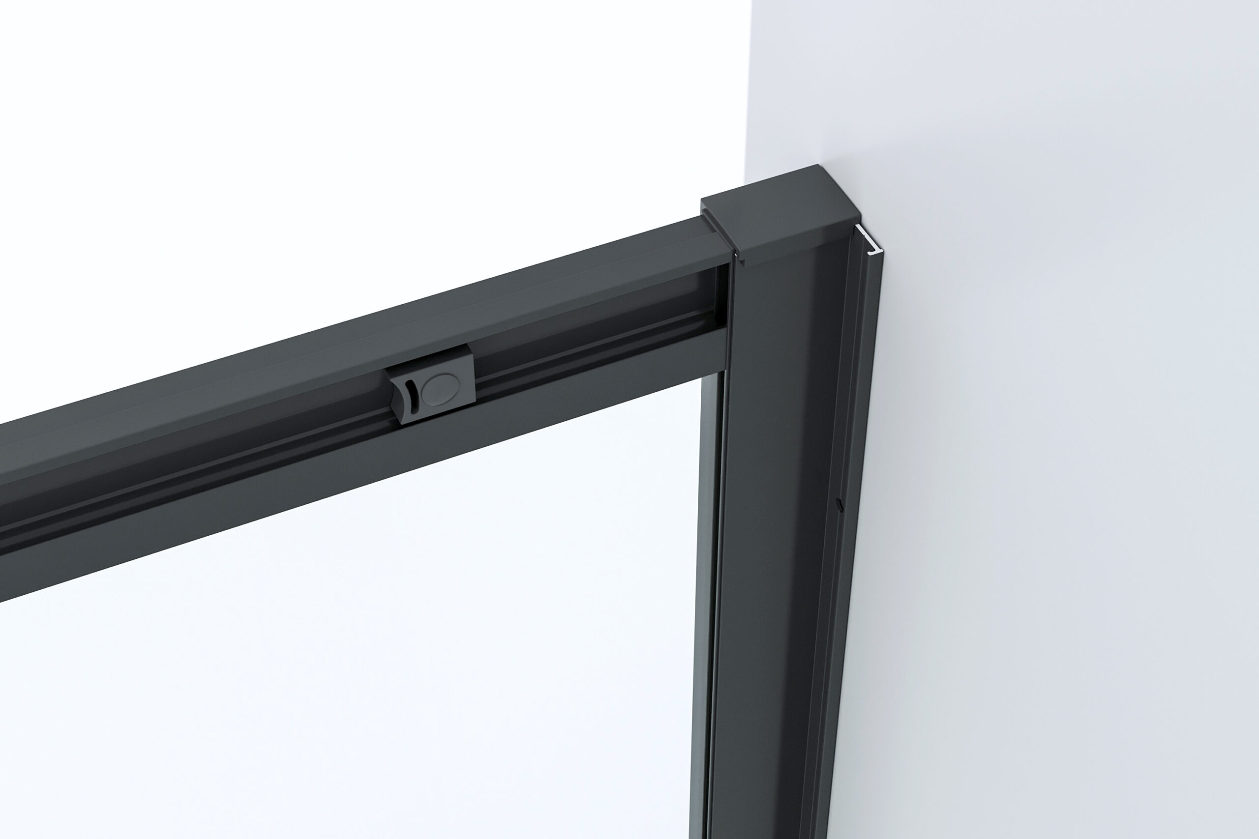 - Zijwanden met matzwarte profielen leverbaar in de breedte: 80 cm en 90 cm