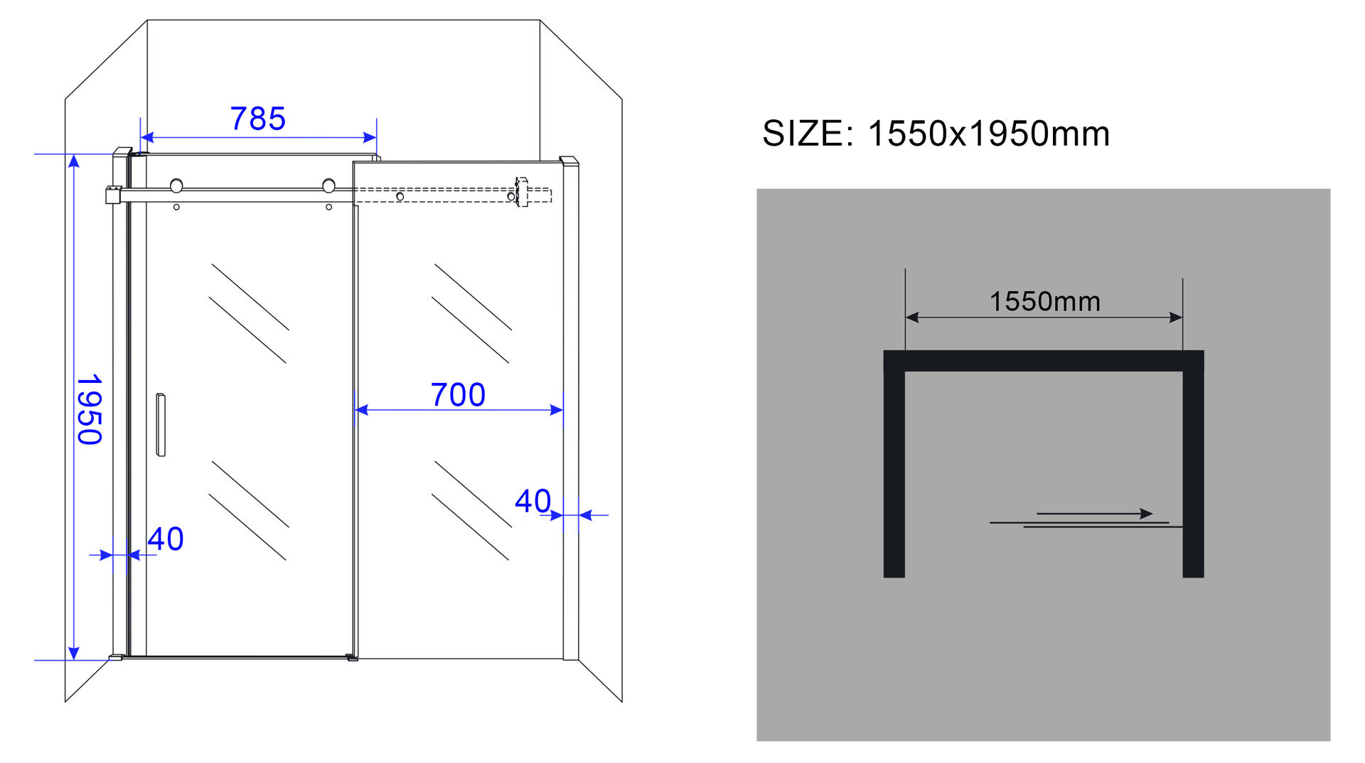 - Douche-Design Nis schuifdeur voor plaatsing tussen 2 muren.