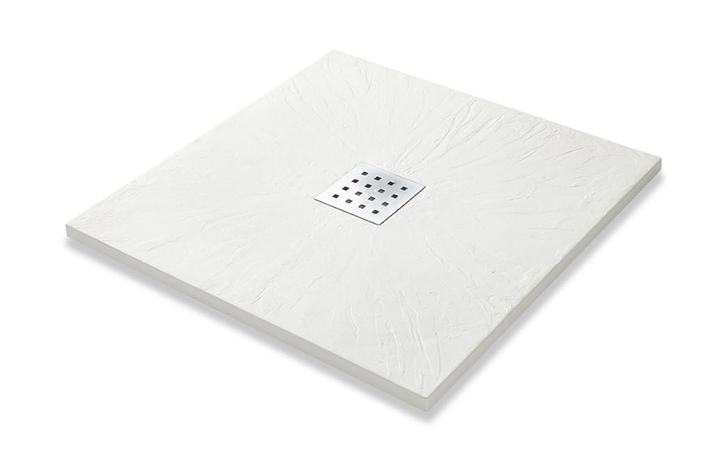 Deze vierkante composiet douchebak is leverbaar in 3 afmetingen: 80 x 80 cm, 90 x 90 cm en 100 x 100 cm. Standaard wordt er een chroom kleur rooster meegeleverd.