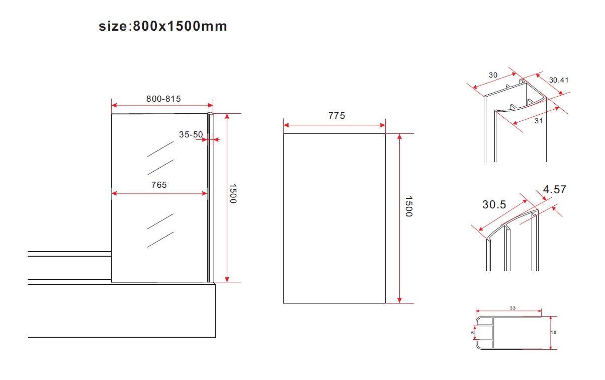 Deze vaste badwand heeft een afmeting 80 cm breed en 150 cm hoog. Het aluminium verchroomde profiel heeft een stelmogelijkheid van 15 mm.